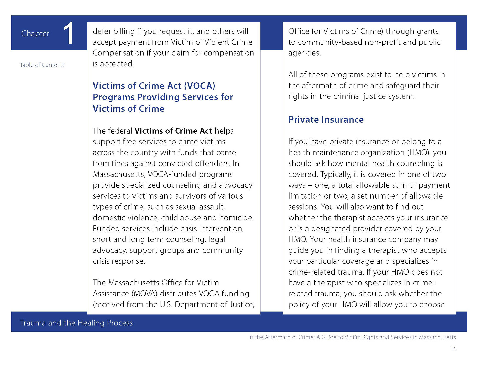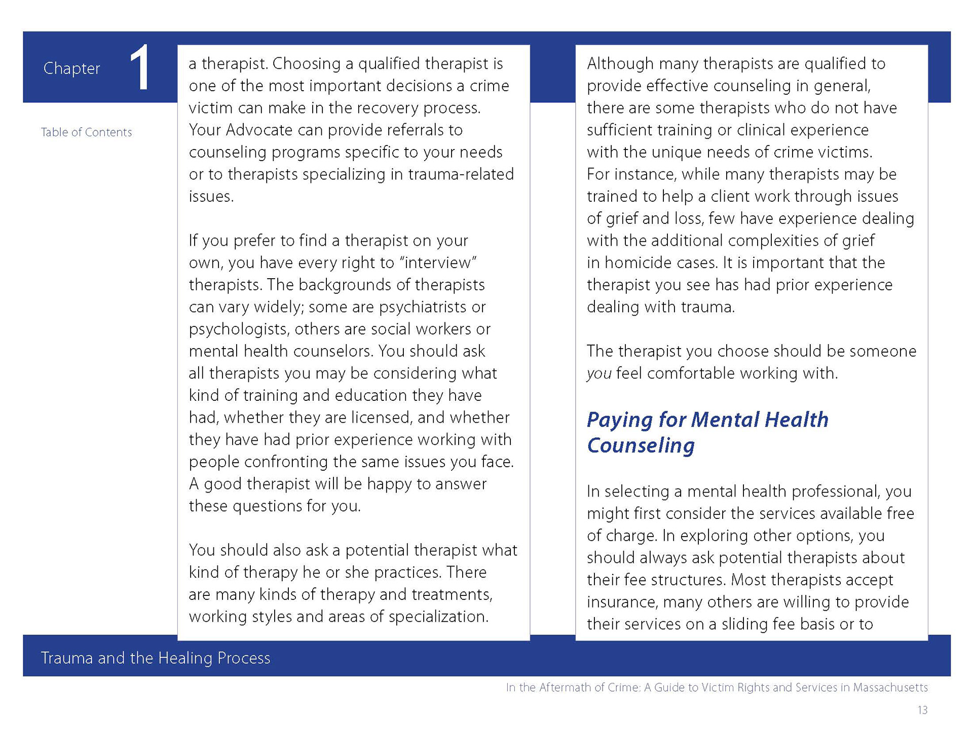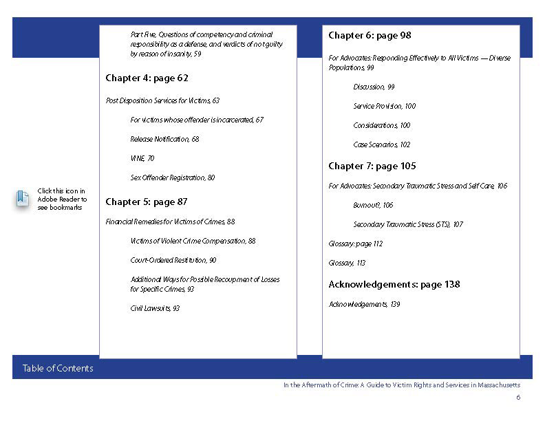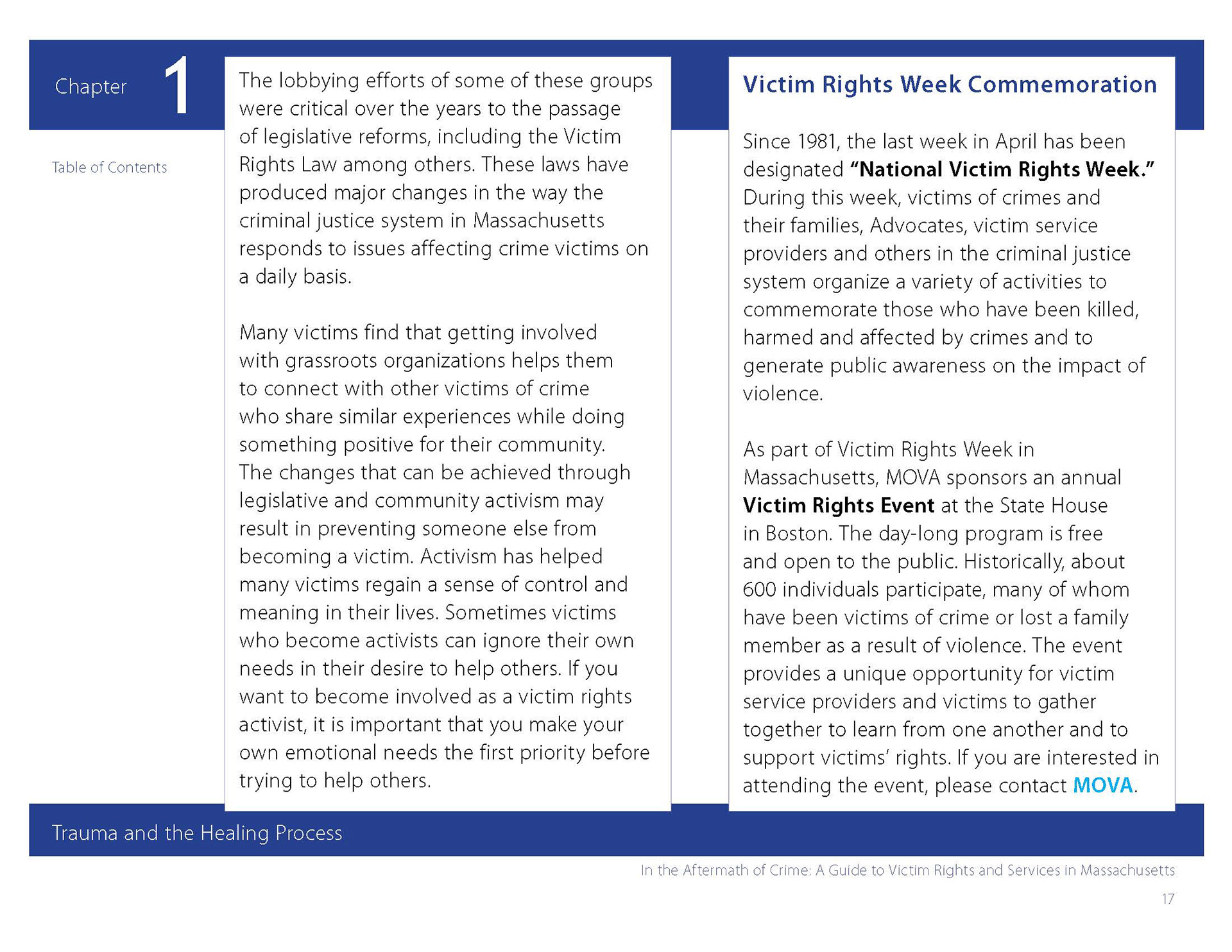This is an interactive PDF that is called "In the Aftermath of Crime: A Guide to Victim Rights and Services in Massachusetts." It was created for the Massachusetts Office for Victim Assistance as a downloadable resource.