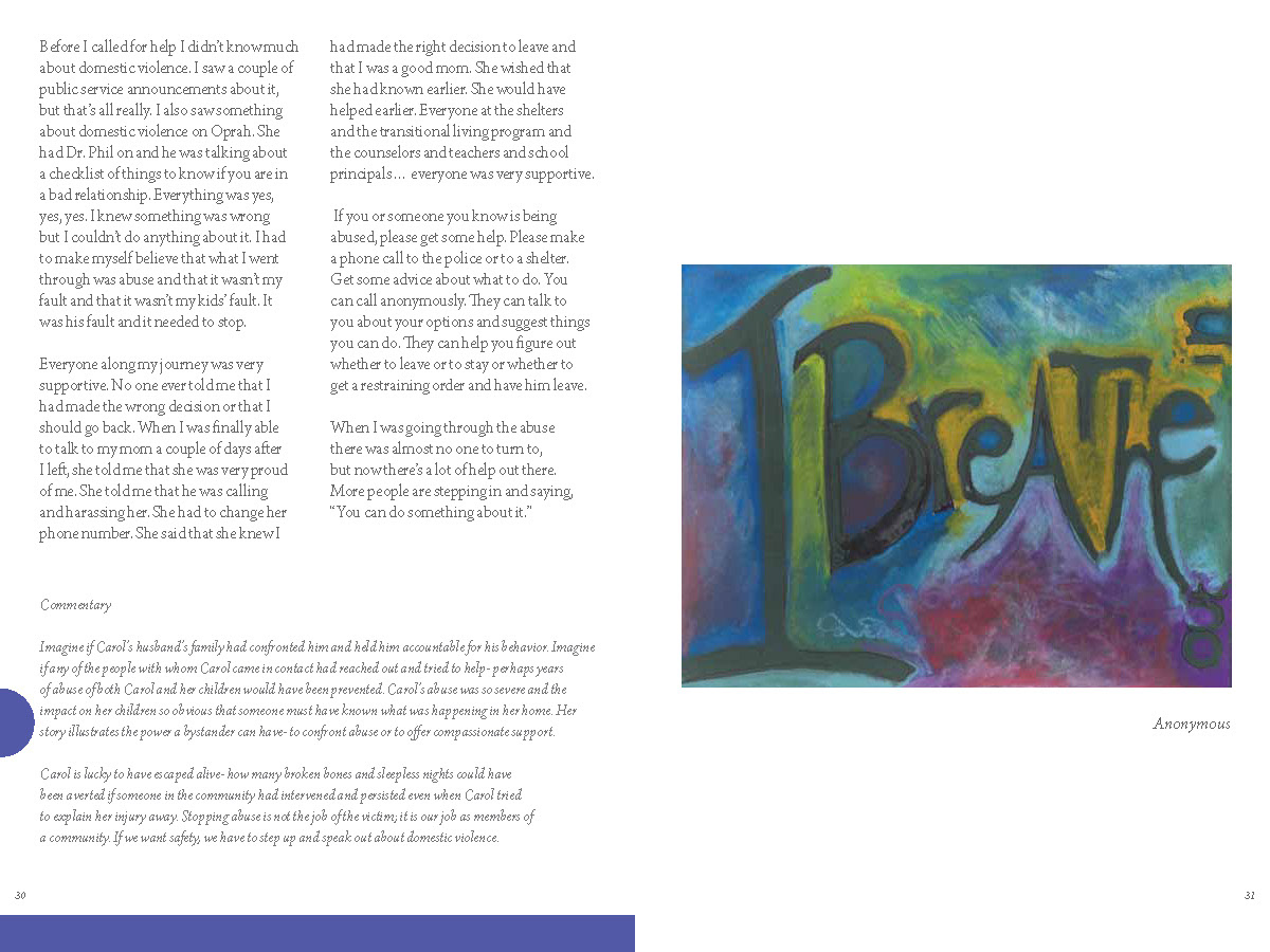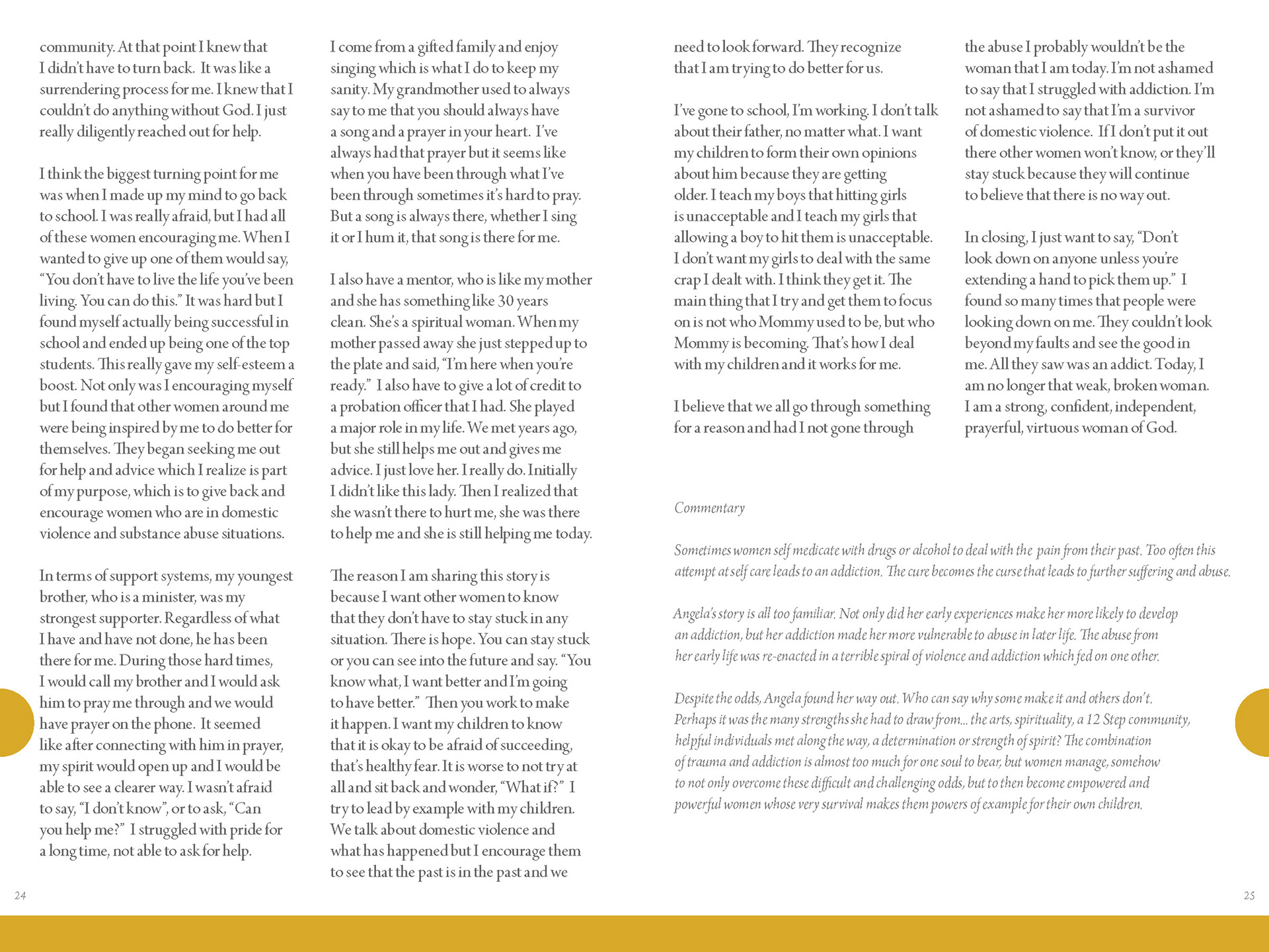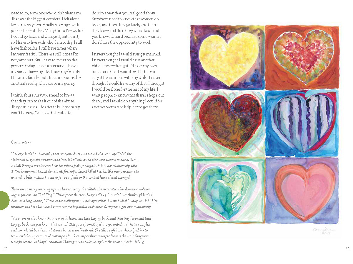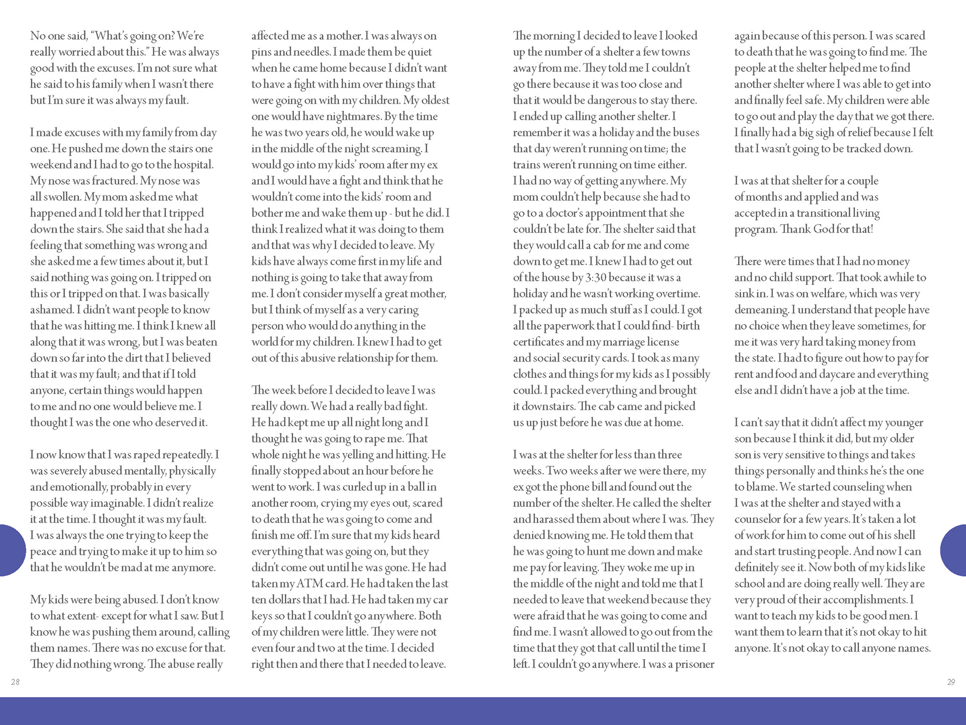This is a book of stories and artwork from sexual assault survivors. It was done in english and spanish for Amy Waldman at the Deptartment of Public Health in Massachusetts.