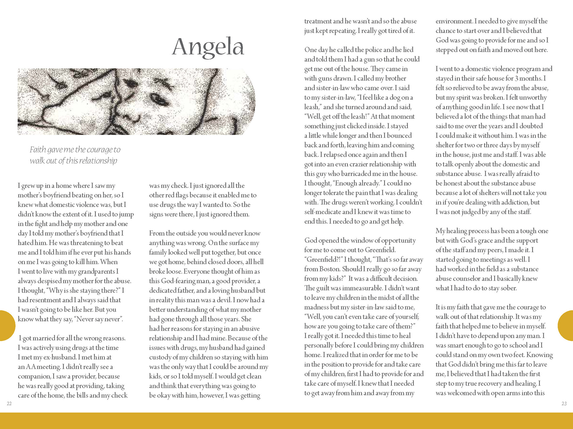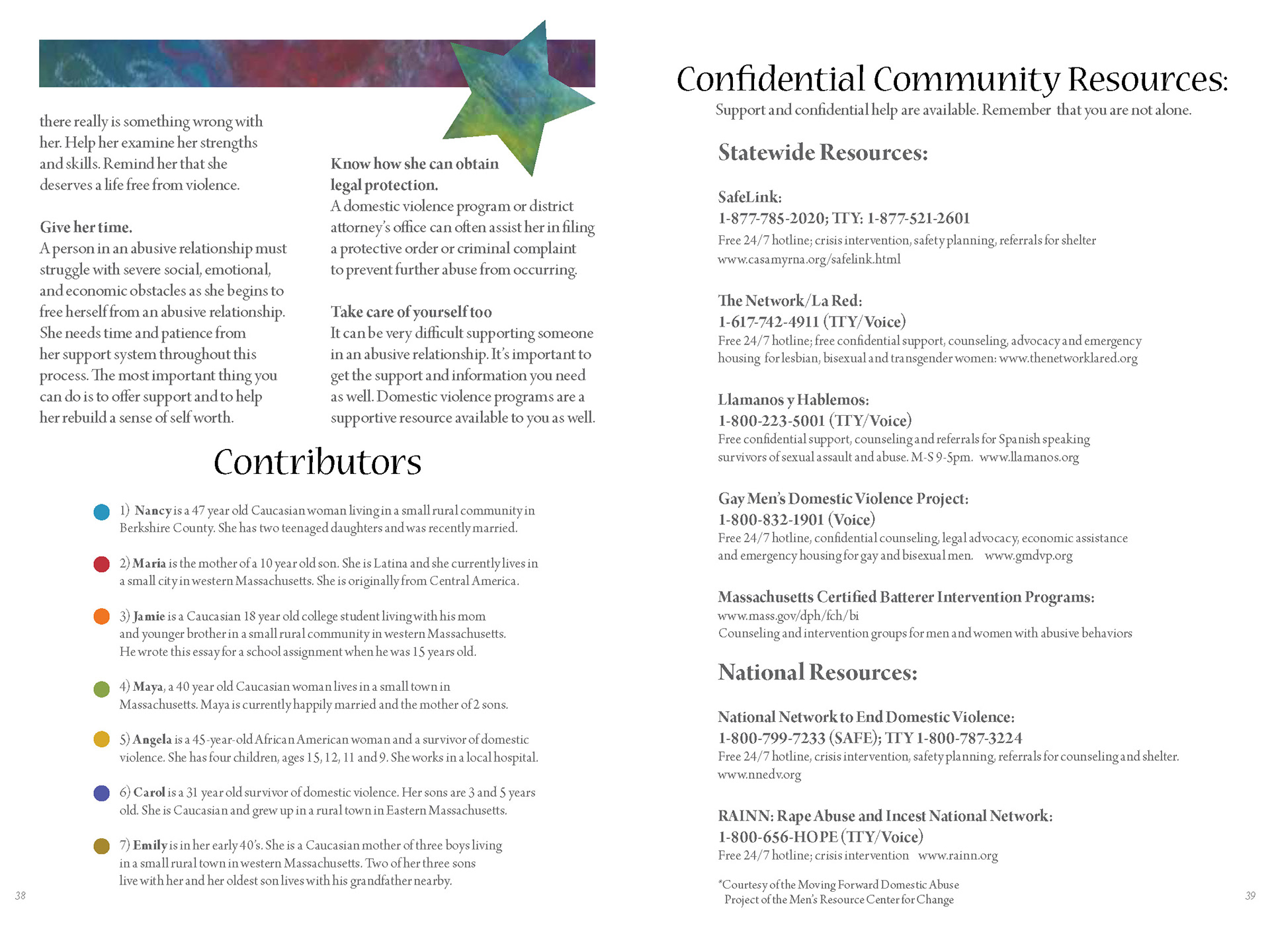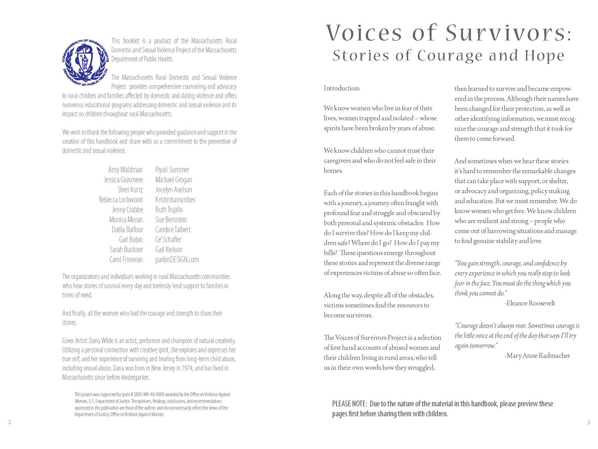 This is a book of stories and artwork from sexual assault survivors. It was done in english and spanish for Amy Waldman at the Deptartment of Public Health in Massachusetts.